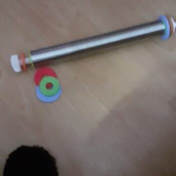 My old wooden rolling pin had painted handles and the paint was flaking off so I needed a new pin. I really liked what I learned about these metal ones that you can control the height with the little sliding rings. The sliding rings are a variety of sizes and help keep the thickness of the dough consistent during the rolling process so I don't have to guess whether it's the same anymore.