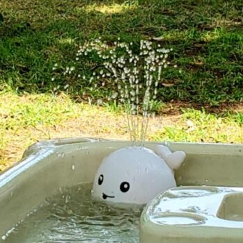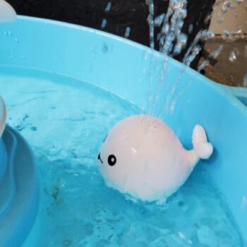 Let me start by saying that I am absolutely in love with this little whale! I’ve even taken a bath with it by myself it’s so darn cute! I bought this for my 18 month old son who just adores bath time, but always wants to keep the faucet running so he can play in the steady stream of water. Of course, that meant we had to periodically drain some water from the tub as is began to fill up too high, and the amount of water that was being wasted as a result was bumming me out! I thought this would be the perfect solution as he would still have a steady source of flowing water to play in and it wouldn’t be wasting down the drain! This whale did exactly as advertised! We didn’t have a problem with it not turning off when lifted from the water as other reviewers mentioned. The fountain of water peaks at about 7 inches which is the perfect height for him to play in, but not so high that it will come out the sides of the tub. After such a glowing review, I’m sure you’re wondering why I only gave it 4 stars. Well, it turns out that my son is absolutely terrified of this whale! He’s alright as long as we hold its tail so that it doesn’t float around, but as soon as we let go and the whale starts moving around the tub he goes to screaming. I’m sure he’ll warm up to it eventually as he does love playing in its fountain as long as we’re holding it! I would absolutely 100% recommend this bath toy to anyone who asked!