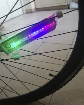 I'm using it on my electric bicycle I was very colorful it's fun it makes me impossible not to see what I'm writing I just wish I could adjust where it stays on my spokes other than that it's great