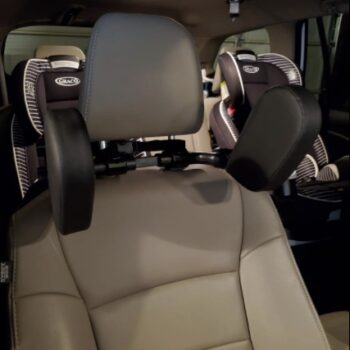 This thing is great!! I finally pulled the trigger and bought one for my 6 yr old and 10 yr old to use on a car trip we're taking this weekend. I have a Ford Explorer, 3 kids in the second row, 1 cart seat. My 6 yr old and 10 yr old are going to use this between them and then the carseat is on the other side to use as a headrest. They also have those neck pillows, but they don't like to use them for some reason. I'm so glad I finally got this. It looks really nice, very easy to move into any position and fits snug and tight on the headrest. My husband tried it out last night and approves as well.