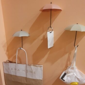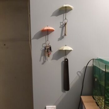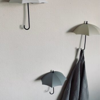 Like opening an umbrella on a wet day, our hooks get to work in the blink of an eye. Each hook comes with double-sided adhesive tape, so all you have to do is remove the protective film and adhere the hook to the wall. Need to shift gears or change? Removing the hooks is easy without worry of removing paint or damaging your walls.