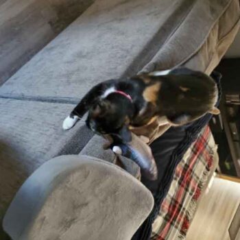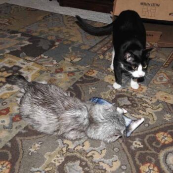 I gave Hope the fish cover while charging the battery at my computer! She enjoyed playing with it and I think it helped her feel comfortable with it on the initial introduction. The part I appreciated most about it was that she spent time playing in the living room it while my boyfriend and I were sleeping. We usually keep her in the room with us because she tries to jump places she’s not allowed, but she had her fill of the fish, and then came and napped with us. It keeps her company! She’s a little co-dependent, so I think it’ll help her when we go back to work. I like to imagine when she played with it without the motor, and then I put the motor in, she was mind-blown and wondered how it suddenly came to life X)