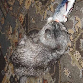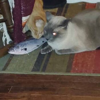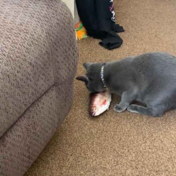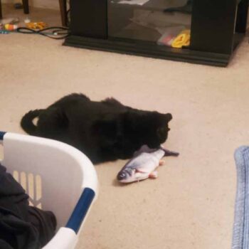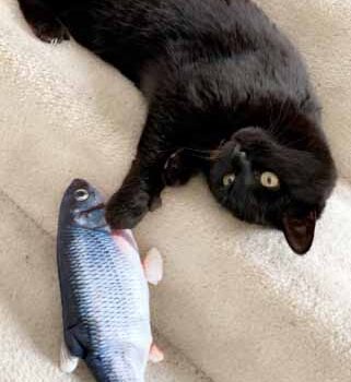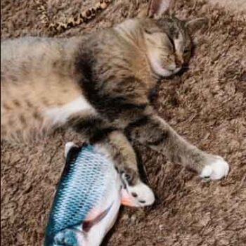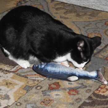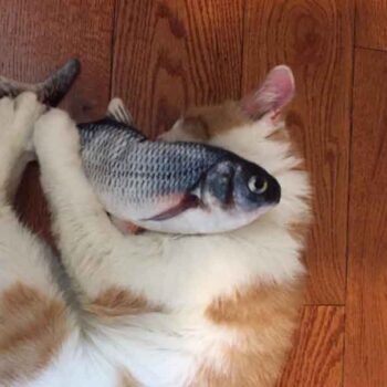My cat Petey has taken complete ownership of the toy. He is attacking the other cats when they go near it. I had no idea it would be such a big hit with the kitties. The fish find flop like a fish out of water. It’s great.