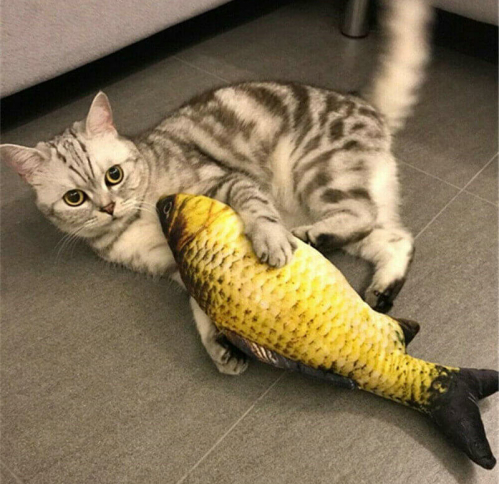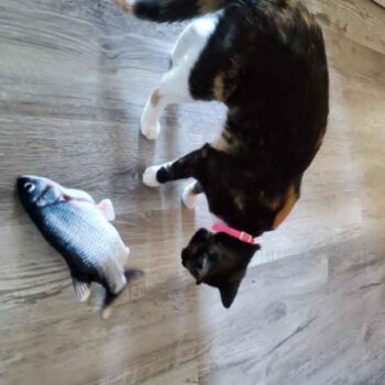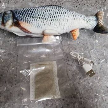 Since opening this toy, my cat has refused to put it down. He has spent literal hours just carrying it everywhere with him and watching it until the battery finally died and he lost interest. Luckily, the fish has a rechargeable battery so I just plugged the fish in overnight and it was as good as new in the morning. He likes to carry the fish everywhere with him, it even came bird watching on the windowsill with him. The motor to the fish isn’t loud but it isn’t silent either, the fish has an on/off switch so I make sure to turn it off at night time while it’s recharging so that I’m not woken up by a stuffed fish flapping on my face. Definitely a fun toy for cats and it comes highly recommended by my cat.