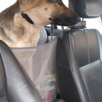 Great thing. Fits great into Polo sedan, and thick enough to keep the Stafford busy chewing the zippers.