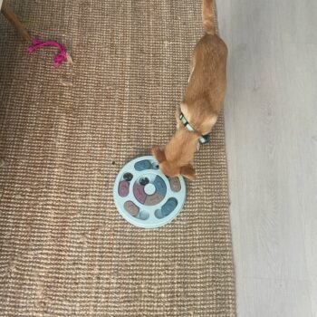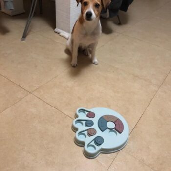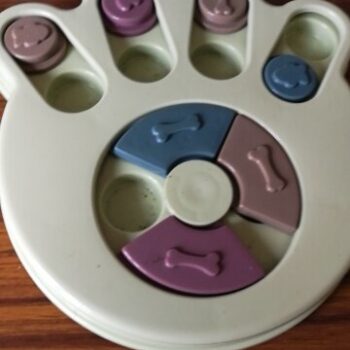 So my dog is a confirmed genius- just kidding but she solved this in less than a minute. I thought about getting a more complex puzzle but thought I’d try this one out first in case she wasn’t a genius. The only negative aspect of the product is that if your dog chews up toys she will probably chew up the puzzle pieces. So this is a puzzle I’d recommend using if you are home with your pet. I’ll look for another one to use when I am gone to keep her busy mind occupied.