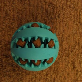 The ball is slightly smaller than I imagined, and I was worried it would be to easy to find all the treats. But I wedged quite a few in there and it took my Hassie a good while to pick the toy clean! She is a very curious and energetic pup so I am always happy to find a new source of enrichment for her.