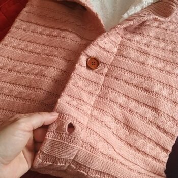 This is such a beautiful baby swaddle blanket with a very unique look and style. It's so soft and warm, I wish they made these in adult sizes! The big chunky buttons are a nice added touch!