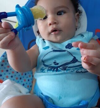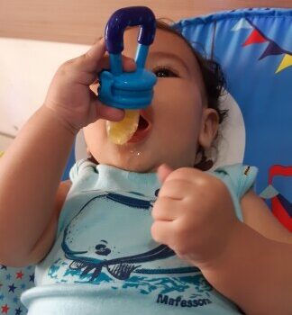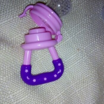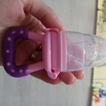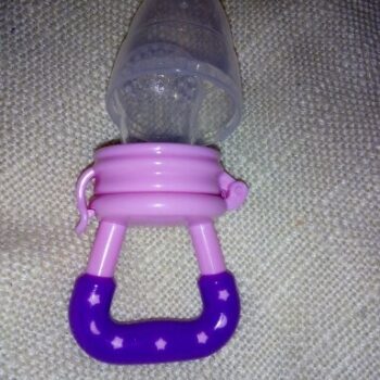 Prevent coughing and choking (or slapping away of the hand) from your little one by using this pacifier to ease your baby into tasting fruit.