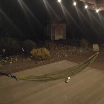 Our hammock is constructed out of heavy-duty 210T parachute-grade nylon, for dependable support whether you’re higher up between two towering trees or closer to the ground between a palm tree and beach house pillar. When fully set up, the hammock measures 4.6 x 8.53 ft / 140 x 260cm ( L x W). When occupied, the hammock supports up to 440 pounds.