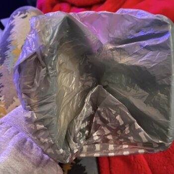 Unhook the bag ends from the scooper handle and carefully pull out the bag. Dispose of the poo into a waste basket.