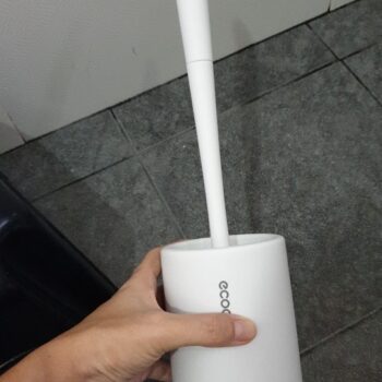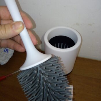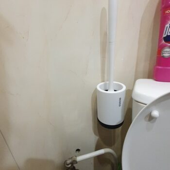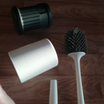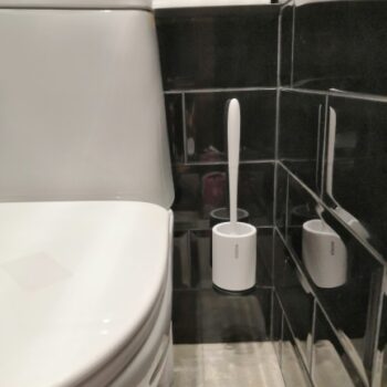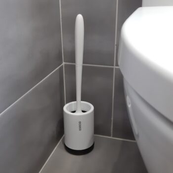 Our brush in total measures 16” x 3.5” (410mm x 90mm), meaning it doesn’t take up a lot of space. No bulky square holders like with traditional, ordinary toilet brushes.