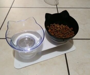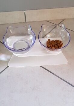 I have an elderly cat and thought that the slight tilt and elevation of these bowls would be less strain on her. It's super cute and she does seem to be doing well with it. The only thing I would mention is that making the bowls a little more easily removable from the base may be helpful, especially when refilling the water bowl. Overall, glad I purchased it.