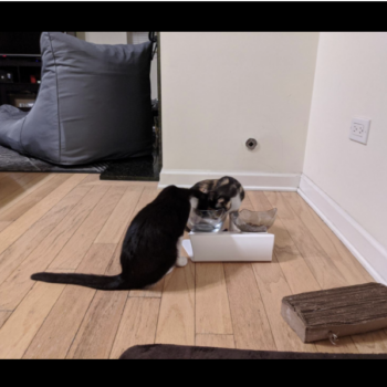 My husband has been reading that cat's need to have their food bowls raised slightly off the floor for better eating ergonomics and comfort. I got this and it has been a perfect solution. They both adjusted to it very quickly! The bowl shapes are very easy to clean out and there is a little lip that they stick into that helps prevent them from tipping over. I might even buy a second one so that both cats can have their own feeding stations.