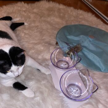 It’s definitely very cute and the cats can easily eat out of it.