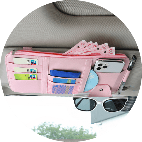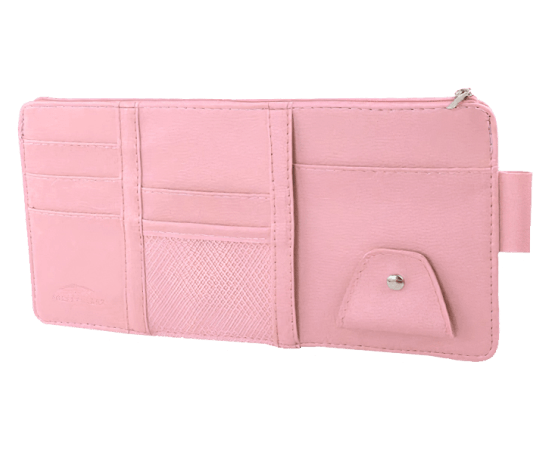 Get it together and bid adieu to messes inside the car. Keep necessities like your credit cards, phone, metro pass, and more all together neatly with this Pink Car Documents Visor Organizer.