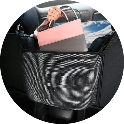 I love this for my purse! I thought it would be a little bigger but my purse fits fine. I wish it fit two for my passengers but the rhinestones are really cute and it gets my purse out of the way! :)