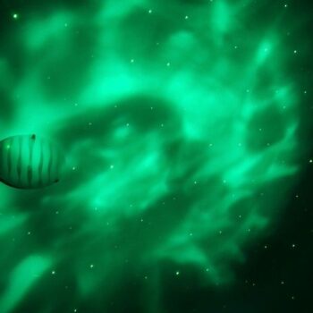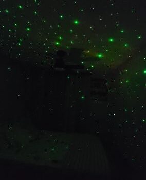 Looks super, and the nebulae move and you can change color, the stars are always green if they were white it would be perfect