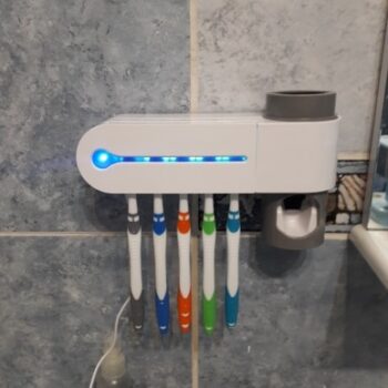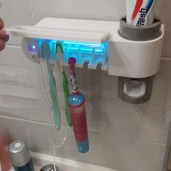 Very cool antibacterial holder. Beautiful design! Holds everyones toothbrush and sanitizes them effortlessly. Great product to save counter space & have a clean toothbrush. Very great product!