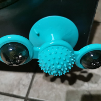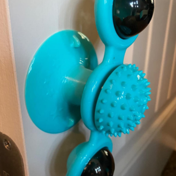 My cat's favorite new toy. I was looking for something to incentivize her to go up on her perch and look out the window, because she wasn't interested before. Now that I put this toy up, I can't keep her off the perch.