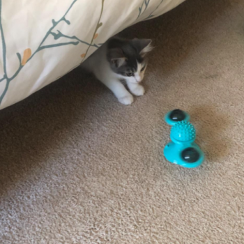 Our kitten is so cute and makes us laugh watching her play with this toy. As with any toys we get for her, we have to engage her to it first and the flashing light helps to get her attention much faster! The suction works great on the kitchen floor also! Plus the toddler plays with it (when we don't have the cat nip in it and supervised obviously lol). Super fun toy for the kitten and little one!