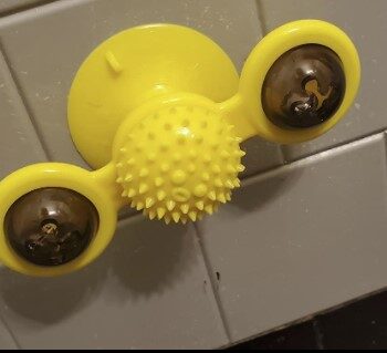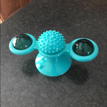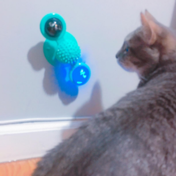 My cat just loves this toy! We have it on the window by our bathtub and she’s always running to spin the toy. She even rubs her head on the center to itch her head which she never does with other cat toys. I love the little blinking ball that goes inside one of the sides of the spinners. My cat will watch the lights blink and go back to spin the toy so they will blink again. Definitely keeps her interest and worth every penny! Highly recommend!